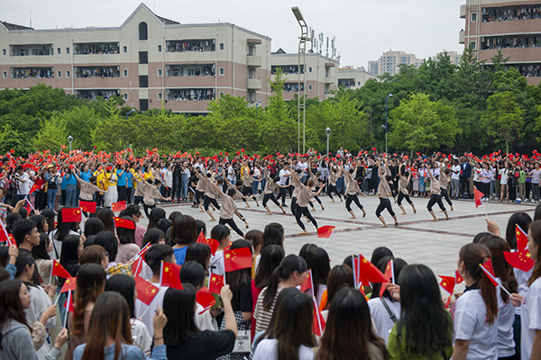 5月,一场名为“青春,为祖国歌唱”的网络拉歌活动在全国各大高校间接力展开,师生们用一首首动听的歌曲礼赞祖国,礼赞新时代。5月15日上午,ac米兰莲湖校区音乐广场上响起熟悉的旋律《我和我的祖国》,来自各个学院的文理师生从四面八方汇聚到此,齐声歌唱,展现文理学子“青春放歌·礼赞中华”的盛况和壮美场景。一时间,整个校园沉浸在音乐的海洋。文理学子用歌声传递着家国情怀,震撼心灵的歌曲不断感动着每一位文理人。