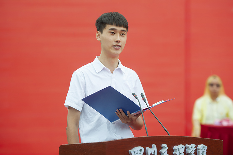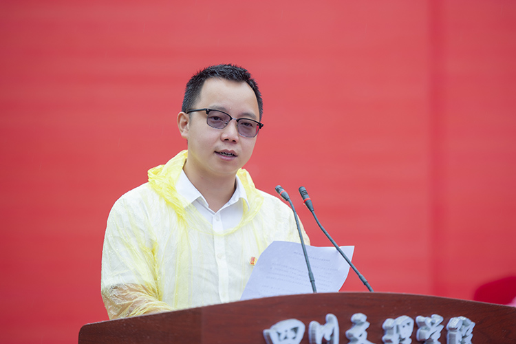 教师代表陈光平博士向同学们表示欢迎和祝福。他说,每一代人有每一代人的历史使命,希望大家在大学生活里,志存高远、脚踏实地,夯实专业基础、筑牢学术根基,勇于完成属于自己的历史使命,在学校里播散梦想与希望的种子,用汗水和勤奋去成就美好的未来和精彩的人生。