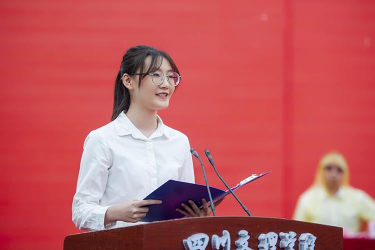 新生代表财经管理学院杨怡玫分享入学感言。她说,作为新时代青年人,要努力夯实自己的专业知识,磨砺坚强意志,勇于砥砺奋斗,担当时代重任,用实际行动为国家和社会贡献自己的力量。