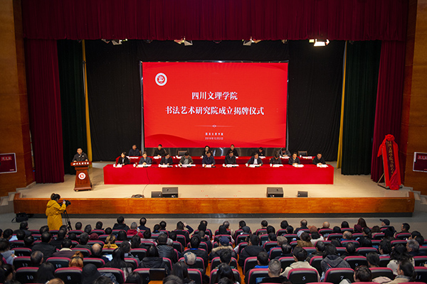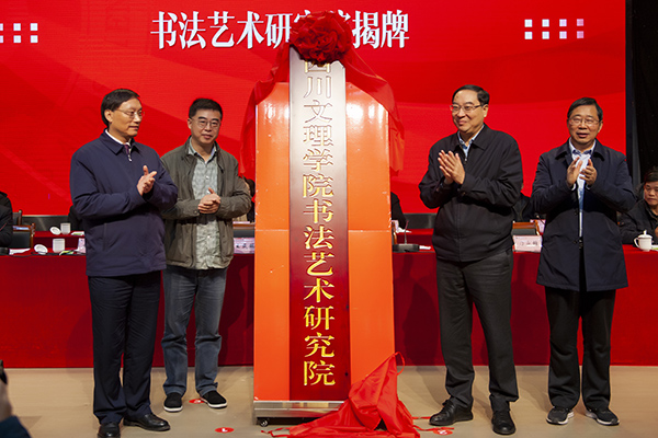 副校长李壮成及省教科院、市政协、市文明办、市文联、市书法家协会、巴山书画院、中国书法家论坛和郑州大学、西南大学、四川大学、西华师范大学、四川师范大学等省内外高校专家及嘉宾受邀出席揭牌仪式。揭牌仪式前,书法艺术研究院在学校美术馆举行笔会活动,举办“翰墨文理,盛世中华”——庆祝中华人民共和国成立70周年书画教学成果展。戴跃为师生作题为《“二王”帖系书法的笔法系统》学术讲座。