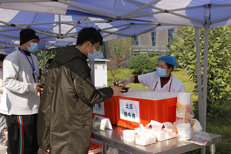 大艺展期间,餐饮服务组组织工作人员每天工作10多个小时,他们及时根据参演师生人数变化和用餐需要,不间断地配餐、送餐,精心挑选食材,认真加工烹饪,并充分考虑参演师生人员饮食特点搭配菜品,将默默的付出和温暖传递到每位参演师生手中。防疫医疗组坚持每天对演出场地和学校公共区域进行卫生消杀,设立红外线体温监测仪,为参演师生及嘉宾发放医用口罩4800余只,全面做好大艺展演期间的疫情防控和医疗保障工作。