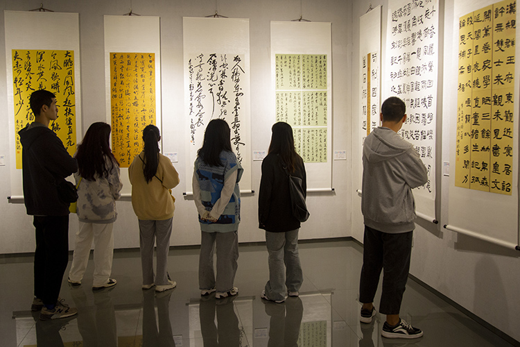 学生观看书法作品展