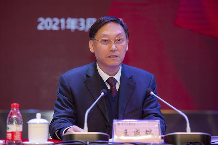 会上,王成端报告了学校2020年工作情况,他围绕科学制定防控措施,打赢疫情防控保卫战;不断加强党的建设,确保正确的办学方向;高等教育综合改革持续深化,学校内涵发展成效显著;师生权益得到保障,校园环境持续优化等四个方面全面系统地总结了学校过去一年取得的成绩。他表示,在新的一年,学校将以习近平新时代中国特色社会主义思想为指导,全面贯彻党的教育方针,深入落实全国、全省教育大会和新时代全国高等学校本科教育工作会议精神,围绕立德树人根本任务,紧扣学校“三步走”发展战略和“1234”总体部署,聚焦硕士学位授权单位建设目标,坚持党建引领,坚持疫情防控和学校发展“两手抓、两不误”,坚持内涵发展、转型发展、创新发展、特色发展,持续深化教育综合改革,奋力谱写学校高质量发展新篇章。