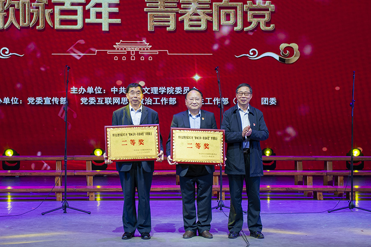 党委书记王成端,党委副书记、校长刁永锋,党委副书记侯忠明,党委副书记、纪委书记张超,副校长李壮成、 徐晓宗、朱兴华、邓杰、程碧英出席青春歌会并为获奖单位颁奖。