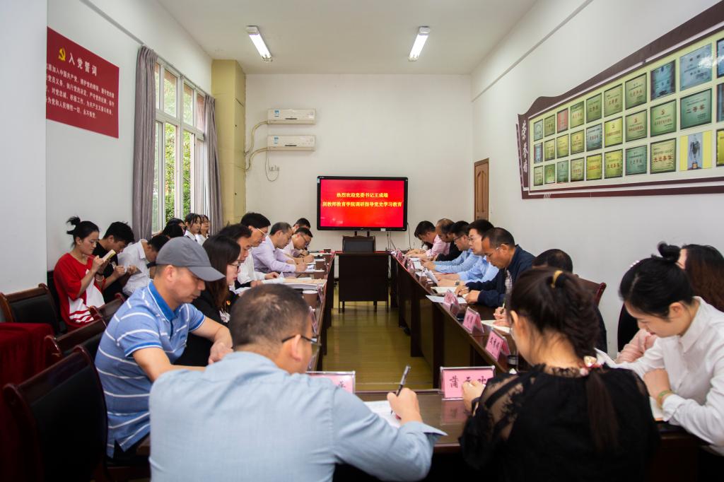 5月12日上午,党委书记王成端深入教师教育学院、建筑工程/生态旅游学院党总支调研督导党史学习教育。此次调研重点围绕二级学院党总支按照学校“1+8”工作方案开展党史学习教育、“我为师生办实事”实践活动、通过党史学习教育推动学院和党总支工作创新开展等方面进行。
