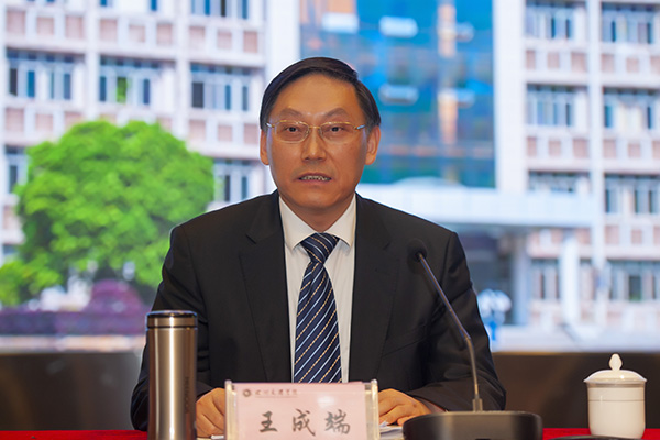 王成端就贯彻落实本次会议精神提出四点要求:一是要坚持正确的办学方向,全面落实立德树人根本任务。全校上下要提高政治站位,把立德树人贯穿到人才培养全过程,实现教书育人、服务育人、管理育人、实践育人、环境育人、文化育人。二是要坚持内涵式发展道路,切实加强本科教学中心地位。要围绕“四圆同心”办学思路,遵循学生成长规律和身心发展特点,实施人才培养、科技创新和社会服务的“质量革命”,推进教育链、创新链与产业链融合发展,实现本科教育创新、教学创新、人才培养创新、实训实践创新,加快推进教育现代化。三是要勇担教育振兴使命,全力提升应用型人才培养质量,扎实推进建设高水平应用型本科教育。全面深化教育教学改革,着力培养“三心四能五复合”的高素质应用型复合型人才。四是要狠抓会议精神落实,奋力谱写本科教育新篇章。各职能部门、教学单位要切实履行好自身的主体责任,提高站位抓落实,咬定目标抓落实,改进作风抓落实。