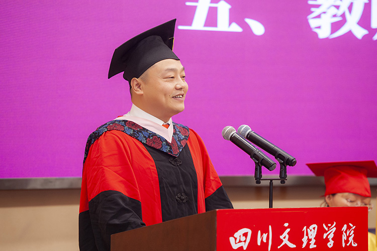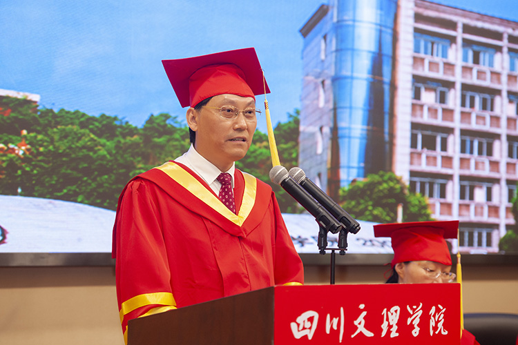 “栀子花开如此可爱,光阴好似流水飞快。”在毕业典礼上,刁永锋与毕业生们一起追忆4年光阴故事,并祝愿毕业生在今后的人生旅途中乘风破浪、砥砺前行,他日重逢,各领风骚。他说,四年来,同学们见证了祖国的日新月异,也见证了学校的蓬勃发展,见证了从千亩校园到成都产教融合基地,从成立川陕革命老区振兴发展研究院到进入中国好大学前500名,从硕士立项建设单位到科研项目成果重大突破,从牵头成立“万达开川渝统筹发展示范区高校联盟”到全国第六届大学生艺术展演荣获最佳成绩等累累硕果。刁永锋寄语毕业生:要做胸怀天下,担当作为,有家国情怀的人。作为一名时代新青年,在传承先辈的社会责任感和担当精神的同时,要把握自己的际遇和机缘,不懈奋斗,勇于担当,敢于作为,为实现中华民族伟大复兴而努力,不负时代,不负梦想。要锤炼品行,锻造品格,做一个有胸襟格局的人。今后无论走上什么样的岗位,从事什么样的工作,都要客观地认识和评价自我;要追求卓越,也要接受平凡,平凡的人知道自己平凡,但依然热爱生活,知道不断进取,不随波逐流,不荒废时光;要紧绷道德这根弦,树立高尚的品德,在奉献集体、成就他人的过程中收获快乐、幸福与成长。要勤于思考,勇于探索,做一个有创新精神的人。要学习先辈在实践中不怕困苦,不断创新的精神,在新的时代机遇面前保持学习热情、探究精神和创新激情,贡献国家,服务社会。要谦虚谨慎,脚踏实地,做一个有强大定力的人。面对诱惑保持清醒理性和强大定力,从容应对挑战;虚心向书本学习,向榜样、向同事学习,增长才干,丰富阅历;不做空想青年,要做实干青年,一步一个脚印走向成功。