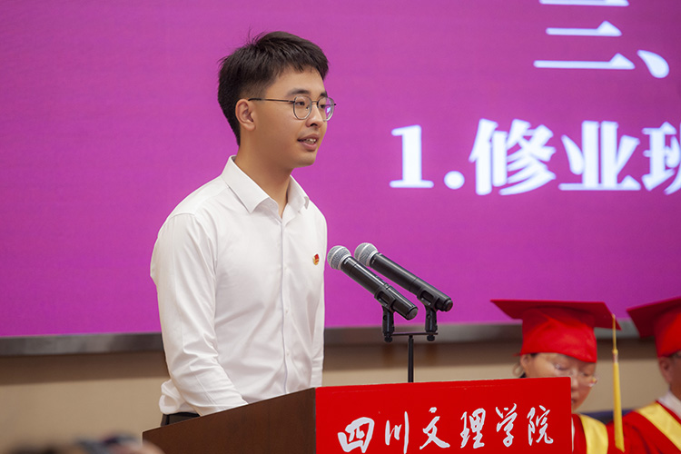 来自智能制造学院的修业班代表邹勋浩说:“忆往昔,少年意气,心系州河水;盼来归,铁肩道义,不负文理情。让我们以‘博文大理,厚德笃行’的校训共勉,以‘艰难困苦,玉汝于成’的精神品格为指引,带着耕耘四年的收获,乘风破浪,勇往直前,书写新的华彩篇章。”
