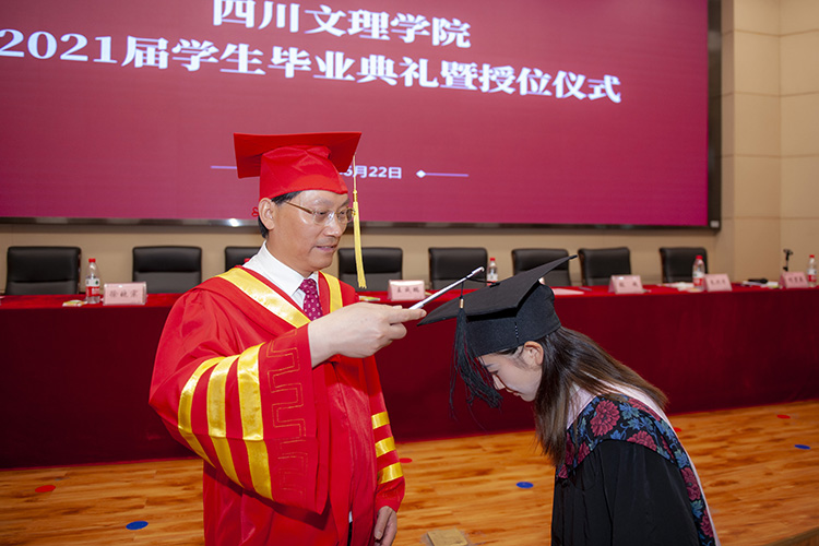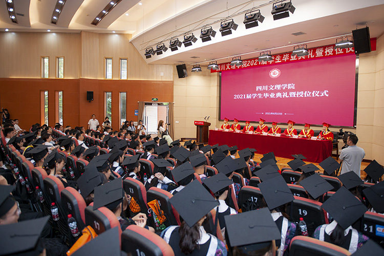 “巴山南,州河旁……”在悠扬动听的校歌声中,文理师生纷纷入座,共同迎来了一场文理学子的青春“加冕”仪式。6月22日上午,2021届学生毕业典礼暨授位仪式在莲湖校区学术报告厅举行。党委书记王成端出席并讲话,党委副书记、校长刁永锋致辞,党委副书记侯忠明宣读授位文件,副校长程碧英主持毕业典礼。