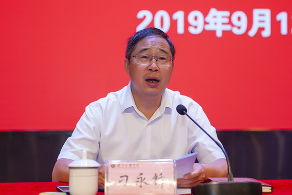 9月12日,学校在莲湖校区召开“不忘初心、牢记使命”主题教育动员部署会,省政协委员、社法委副主任、省总工会原一级巡视员、省委“不忘初心、牢记使命”第十三巡回指导组副组长纪小玲同志到会指导,党委书记王成端作主题教育动员部署,党委副书记、校长刁永锋主持会议。