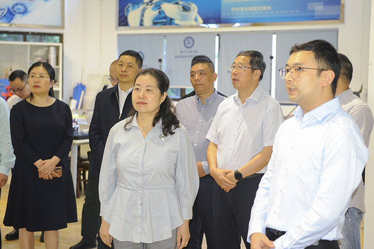 副校长程碧英及市政府副秘书长淳永奉、市市场监督管理局党组书记陈杰勇和学校科技处、知识产权学院、智能制造学院、化学与化工学院等部门负责人参加调研。