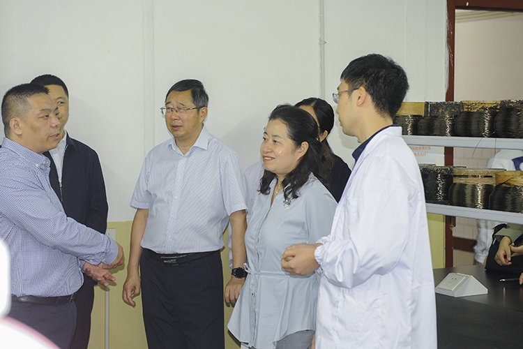 浸润剂技术是玄武岩纤维生产的“芯片”技术,学校新材料研究团队与玄纤省检中心和企业合作,围绕达州“6+3”重点产业发展需求,开展玄纤新材料基础及应用研究,研制出了新型专用浸润剂配方。王蔚荩边听取介绍边查看团队研发成果,对研究团队的创新成果表示赞赏,希望团队注重原始创新,加强成果推广运用,帮助企业降低生产成本,取得较好社会经济效益。