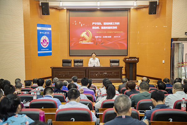 9月25日,学校举行党委理论学习中心组(扩大)学习会暨“不忘初心、牢记使命”主题教育,学习会第一阶段由党委书记王成端组织学习《中国共产党问责条例》,会议第二阶段由副校长邓杰作《中华人民共和国成立70周年中国共产党的奋斗历程与启示》学习辅导。