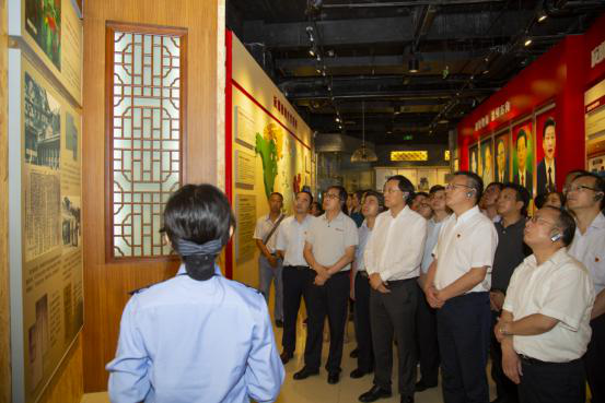 在讲解员带领下,班子成员参观了以“人生之路,与廉同行”为主题的展览。展厅共分三层,包括古今廉政文化、中外廉政建设进程、反腐败典型案例及反腐倡廉图片、实物、音像资料等。班子成员仔细聆听讲解,细心察看实物图片,认真观看每一个案例视频。在二楼展厅,大家走过如履薄冰廊道,参与“温水煮青蛙”警示互动游戏,在讲解员引导下,算起了“政治账”、“经济账”、“名誉账”、“家庭账”、“亲情账”、“自由账”、“健康账”等七笔“廉洁账”。在蒲波案展厅前,讲解员详细解说案件经过,认真剖析蒲波案带给全体党员干部的深刻教训,所有参观者深受触动。走上三楼展厅,讲解员带领大家重温入党誓词,并留给大家三个值得久久思考的问题:入党为什么?当干部做什么?身后留什么?