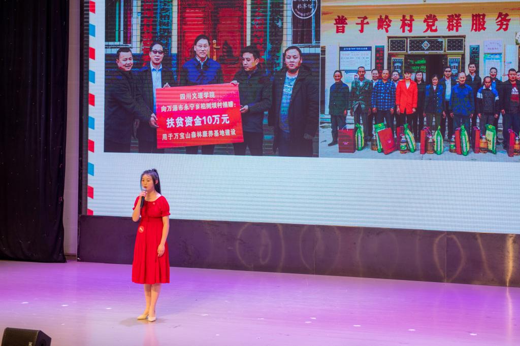 “意义就是激励自己同时也照耀他人、温暖社会的精神光芒。为党育人、为国育才是学校46年坚持做的有意义的事,并会一直坚持下去。”接续党委副书记侯忠明的致辞,文学与传播学院的王虹雨首场的《一封感谢信》讲述了学校与万源结对的7年来与当地的父老乡亲结下的深厚情谊。2022年1月30日,在除夕前一天学校收到来自万源市委市政府发来的感谢信,感谢学校从2015年来发挥学校在教育、科技、人才、文化等方面的综合优势服务地方脱贫攻坚,助力建设“生态福地•和美万源”新篇章。