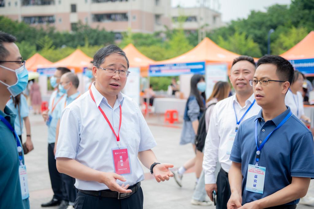 5月24日,ac米兰2022年春季校园双选会暨达州市“万岗促就业惠民生”活动在莲湖校区音乐广场成功举办。校党委书记王成端、校长刁永锋、党委副书记侯忠明及达州市委组织部副部长刘小流、市人社局副局长杨翔、就业局局长李兴海、副局长李青隆、达州市高端人才储备服务中心主任田果等领导、嘉宾和学校相关职能部门、二级学院负责人到会场指导工作。