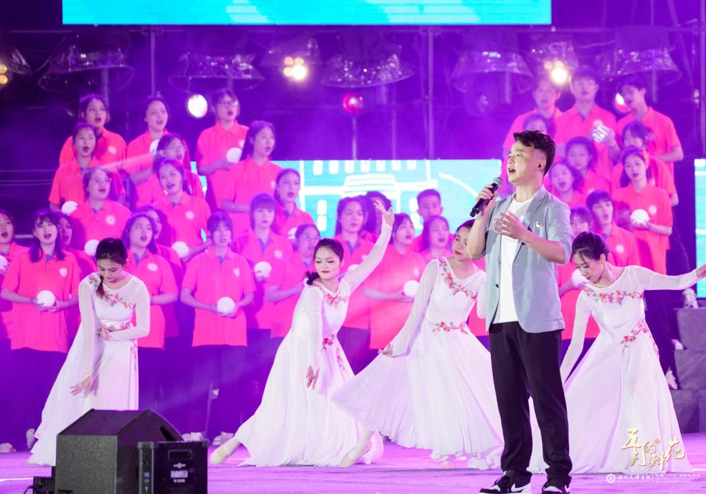 第一篇章主题是“党恩颂歌”,在这个篇章分别为大家带来了《妈妈教我一支歌》《映山红》《我爱你中国》等经典曲目以及演诵节目《百年·正青春》。