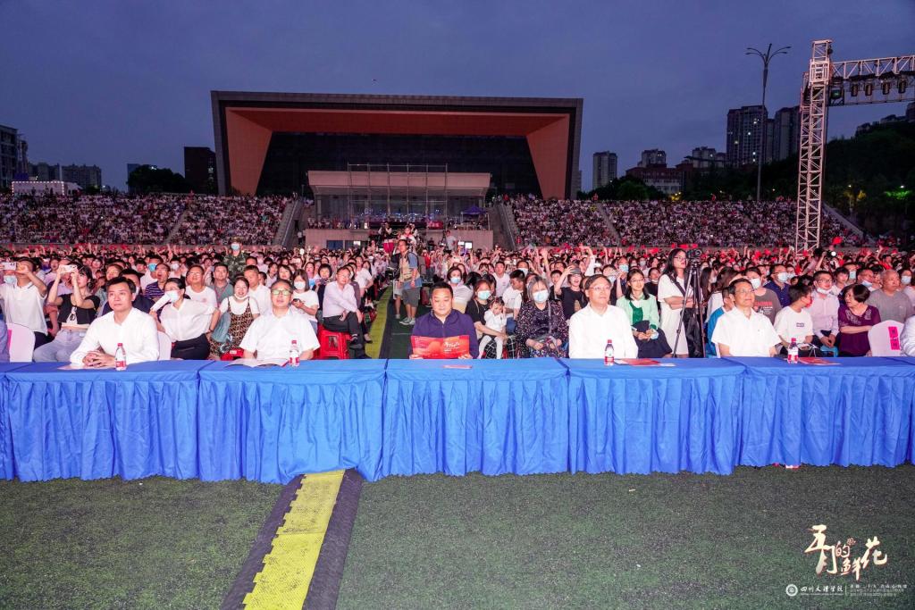 达州市委常委、组织部部长,达州市与ac米兰官网中文网站市校合作推进领导小组组长江彬,达州市人民政府副市长、达州市与ac米兰官网中文网站市校合作推进领导小组副组长张俊懿,西华师范大学党委书记王安平,西华师范大学党委常委、副校长陈涛、李敏,中国工商银行达州分行党委书记、行长耿忠,学校党委书记王成端,党委副书记、校长刁永锋,党委副书记侯忠明,党委副书记、纪委书记张超,副校长邓杰、程碧英等与师生一同观看演出,共同祝福伟大的党带领中国人民迈进新征程、奋进新时代。