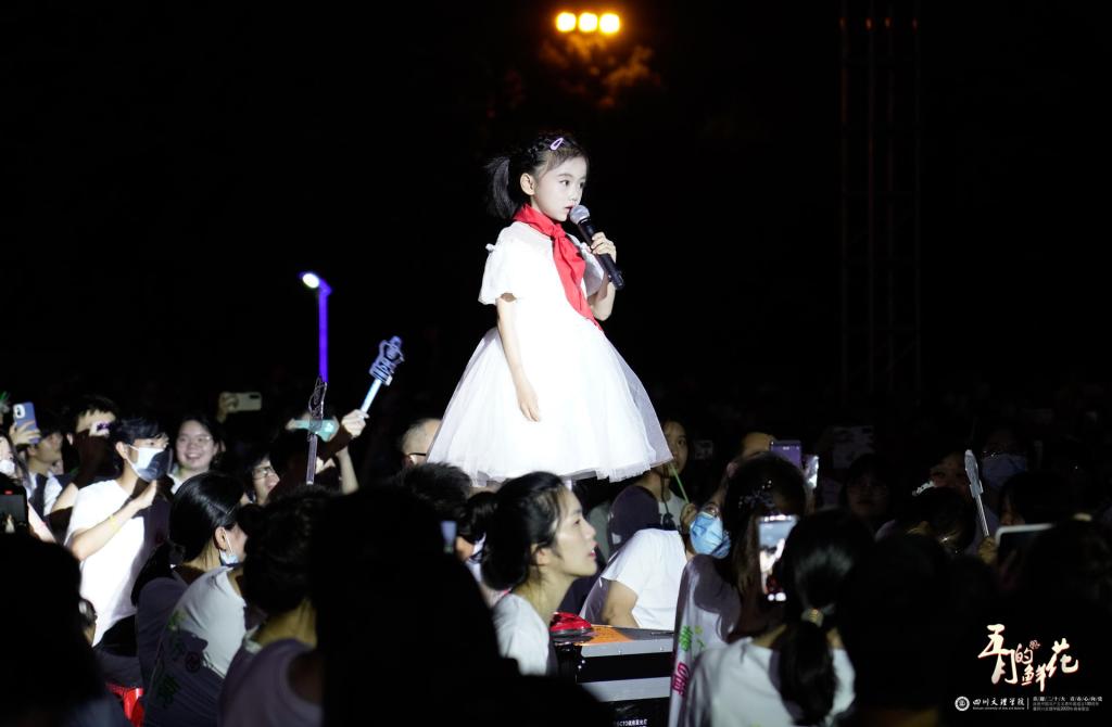 开篇用了童声清唱“妈妈教我一支歌”将晚会拉开帷幕,希望此时能够将彼此的心凝聚,追忆过去,珍惜当下。文畅老师说:“鲜花代替了和平,我们的天空不再有枪声回荡,青年是历史的接班人,接过革命的枪,就要冲锋在前。想通过这样的一种情感的传递方式,让即将奔赴祖国四面八方的文理学子,发奋、努力、用青春点燃梦想,感恩祖国,一起高唱‘我爱你中国’。”