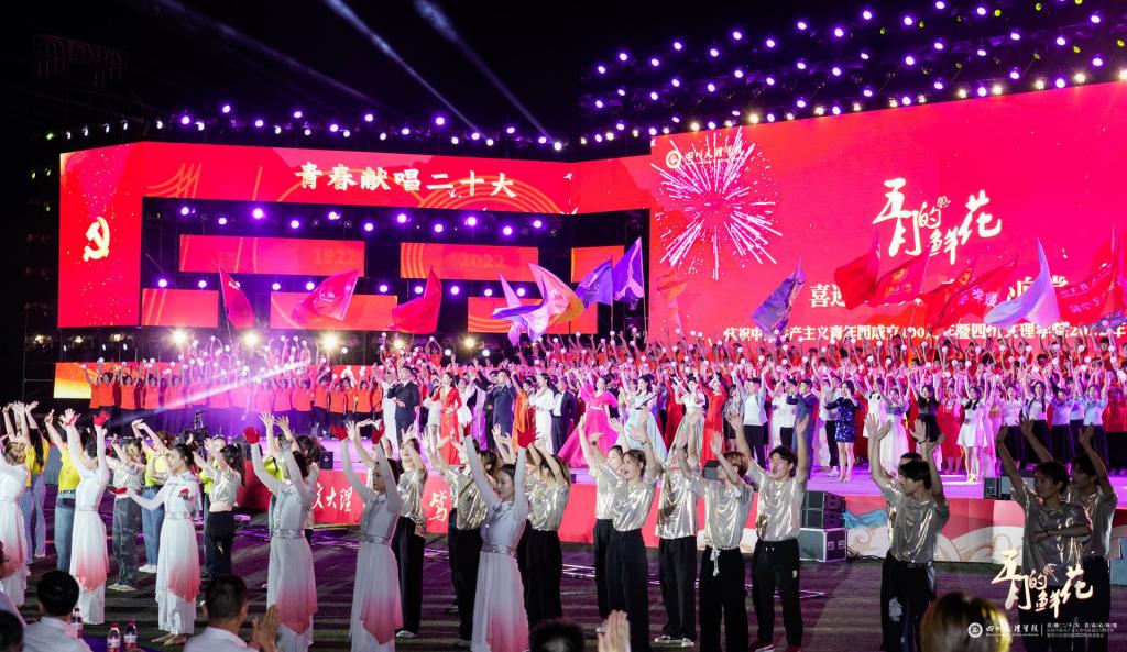喜迎二十大,青春心向党!为庆祝中国共产主义青年团成立一百周年,5月31日,学校在莲湖校区田径运动场隆重举行大型青春歌会。