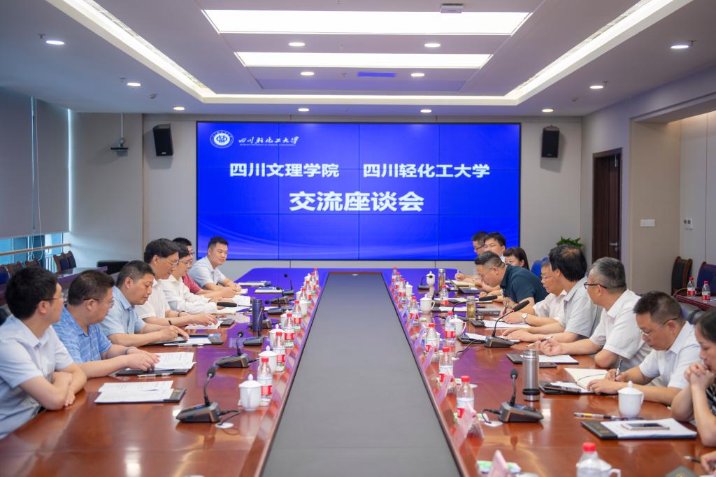 6月8日下午,党委书记王成端一行来到四川轻化工大学交流座谈。四川轻化工大学党委书记王洪辉介绍了该校的发展历程、师资队伍、学生规模、办学条件以及在“652”精神鼓舞下所取得的办学成就。他表示,ac米兰官网中文网站地处川东、四川轻化工大学地处川南,虽地理位置不同,但都承担着为党育人、为国育才的共同历史使命,希望两校加强交流,推进校际之间深度合作,促进共同进步。四川轻化工大学校长庹先国表示,将在师资队伍、科学研究等方面予以全力支持,助力ac米兰官网中文网站硕士学位授权单位建设。