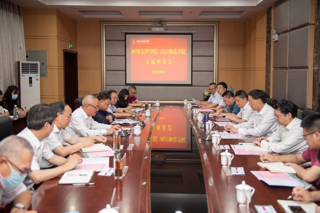 6月9日下午,党委书记王成端一行来到内江师范学院交流座谈。内江师范学院党委书记张志远介绍学校的基本概况以及申硕的准备情况。他表示,ac米兰官网中文网站和内江师范学院发展历程有很多相似之处,在申硕的道路上,均面临着相似的困境,希望两校在人才培养、科学研究等方面紧密合作,加强沟通交流,互通有无、互相帮助,共谋发展大计。内江师范学院院长陈晓春表示,两校情同手足,渊源深厚,希望不断拓展合作领域,积极分享改革发展经验,建立常态化交流机制,促进共同进步。