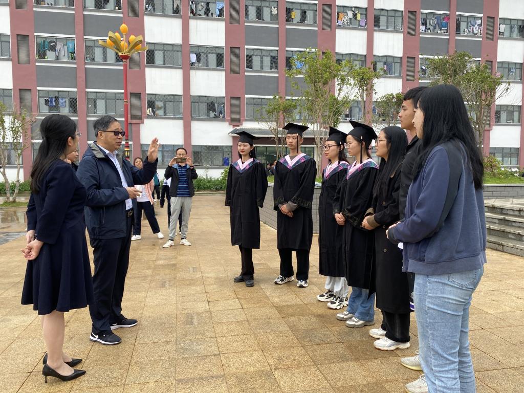 本次支教团中有8名应届毕业生因支教工作无法参加学校学士学位授予典礼,刁永锋率队前往顶岗支教学校,亲手为毕业生戴上校徽,在支教学校操场上举行了学士学位授位仪式。他勉励毕业生要努力奋斗,在新的征程上胸怀大志,拼搏进取,奔赴星辰大海。