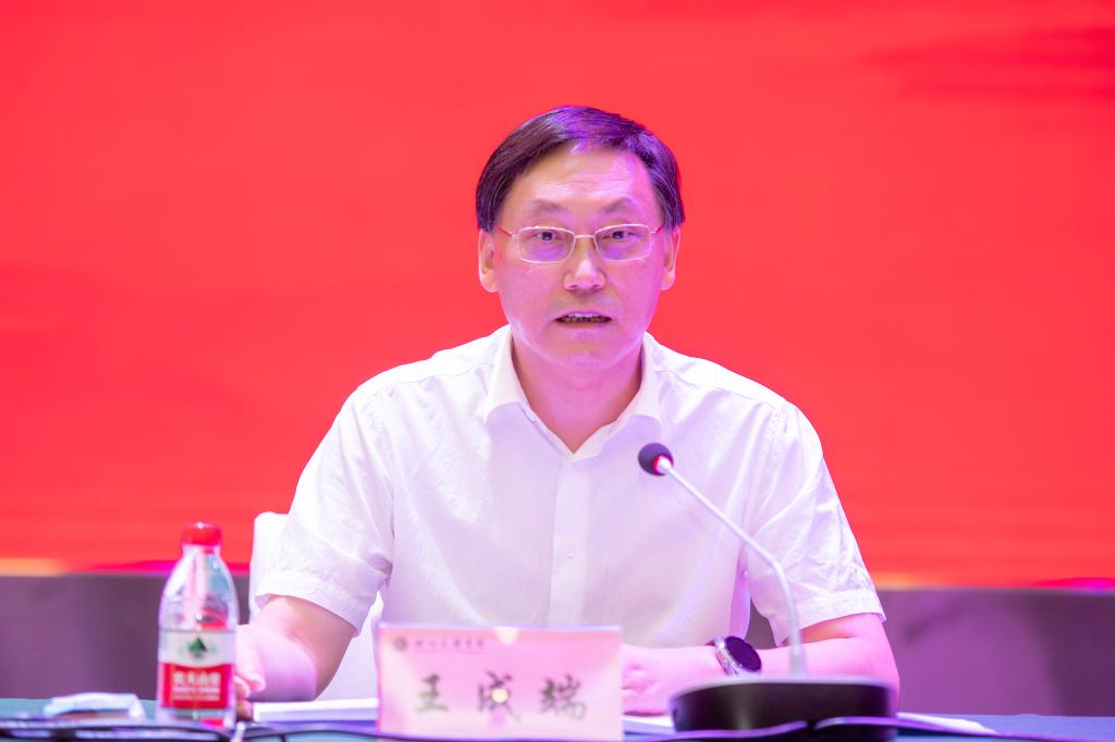 王成端强调,要提高站位,把握形势,始终保持推动学校发展的战略定力。全校各级党员干部要坚持学懂弄通做实习近平新时代中国特色社会主义思想,坚定不移地走中国特色社会主义教育发展道路,切实把思想和行动统一到党中央的重大决策部署上来,做到从政治上看教育、从民生上抓教育、从规律上办教育,不断开创新时代学校工作新局面。要聚焦重点,精准发力,持续提升学校事业发展的质量水平。要扎实做好迎接党的二十大胜利召开相关工作,全面提升基层党建工作质量,全力以赴打好打赢申硕攻坚战,加快推进市校合作协议全面落地落实,持续深入实施人才强校战略,扎实做好毕业生就业工作,以点带面,稳步推进,共同推动学校事业改革发展取得新突破、再上新台阶。要提振精神,鼓足干劲,切实保证各项工作任务的落地落实。以更高的政治站位和担当、以迎难而上的勇气和决心、以更加鲜明的问题导向、以创新性的工作思维和方法、以锲而不舍的精神状态、以严实高效的工作作风、以守纪律讲规矩的底线意识抓落实。