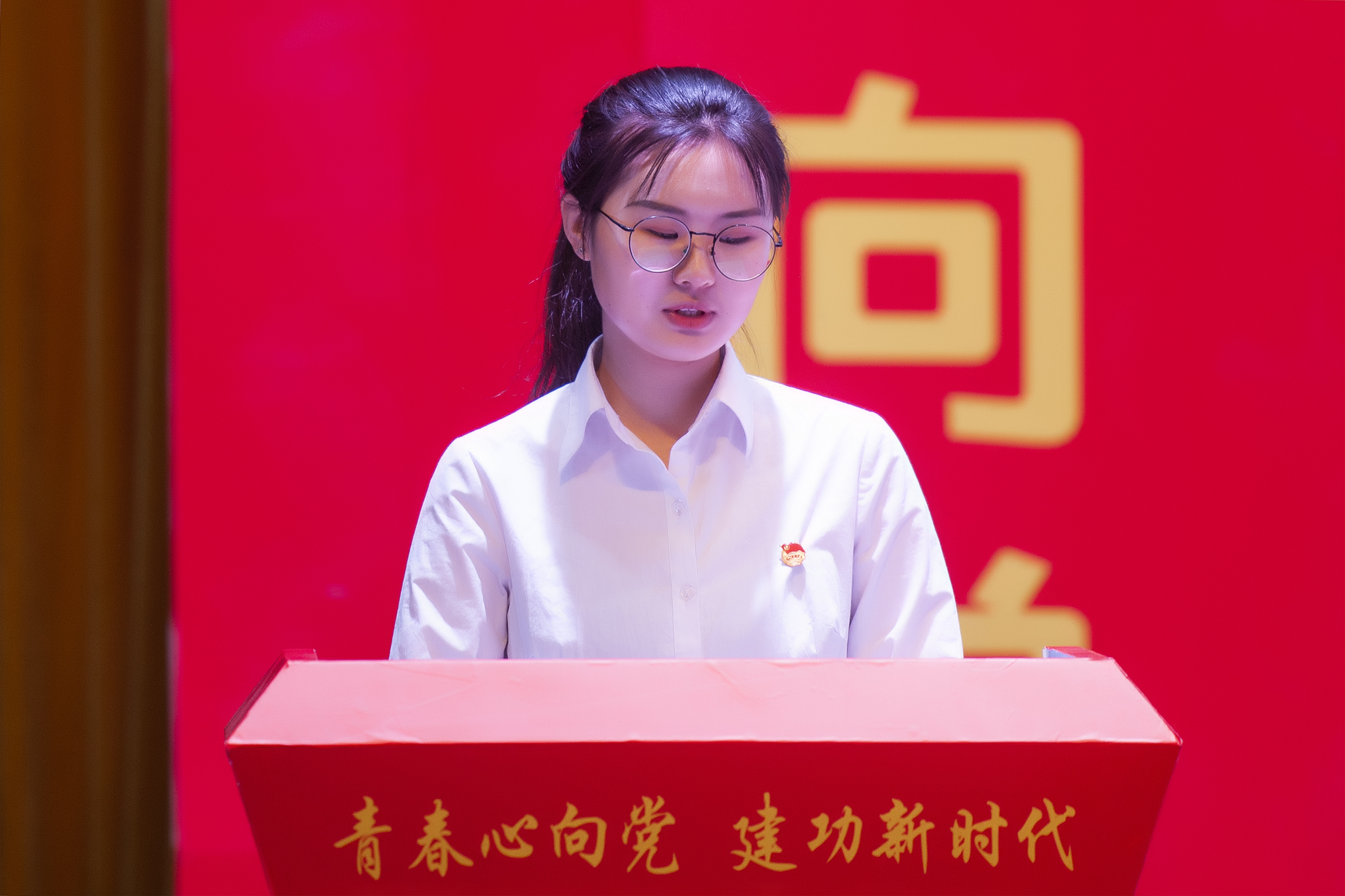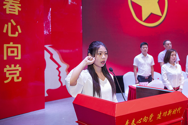 大会举行“青春心向党·建功新时代”入团仪式,全体团员青年庄重的举起右手,向团旗宣誓。青春的誓言,高昂而雄浑,表达了同学们对共青团组织的无限向往和为民族的伟大复兴增光添彩的豪迈激情。