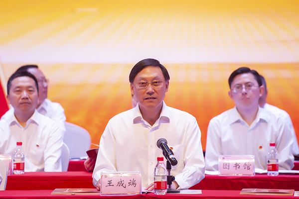 王成端首先代表学校党委向与会的青年代表并通过大家向全校广大团员青年致以节日的问候,向受到表彰的先进集体和先进个人表示祝贺。王成端指出:伟大的精神力量总能穿越时空的阻隔,在一代又一代青年心中引发深沉共鸣。今天,文理青年们,仍然高擎“五四”爱国伟大旗帜,勇担发展重任,坚定理想,努力学习,奋发有为,砥砺成长,为推进学校建设“特色鲜明、优势突出的高水平应用型大学”贡献着青春、智慧和力量,为中华民族伟大复兴谱写青春激荡的时代华章。