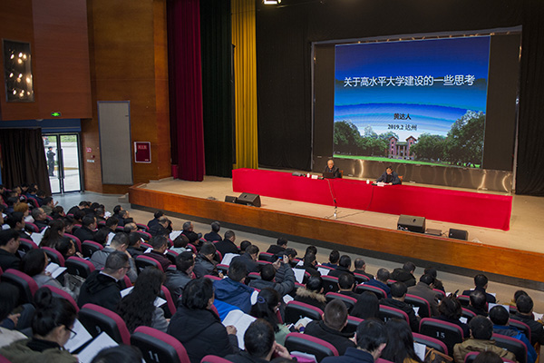 党委副书记、校长刁永锋在总结中说,黄教授的讲座信息量巨大、思想深邃、内涵丰富,黄教授把自己多年来的研究心得和体会等真知灼见贡献给我们,体现了一个教育家、教育改革先行者对创建高水平大学的深刻认识,体现了一个大学校长的办学经验、办学智慧和校长情怀。刁永锋要求广大党员领导干部要深刻领会报告内容,要学得更深,悟得更透,要以更高的标准做好学校的教学、科研和行政管理等各项工作,为学校建设高水平大学贡献自己的才干。