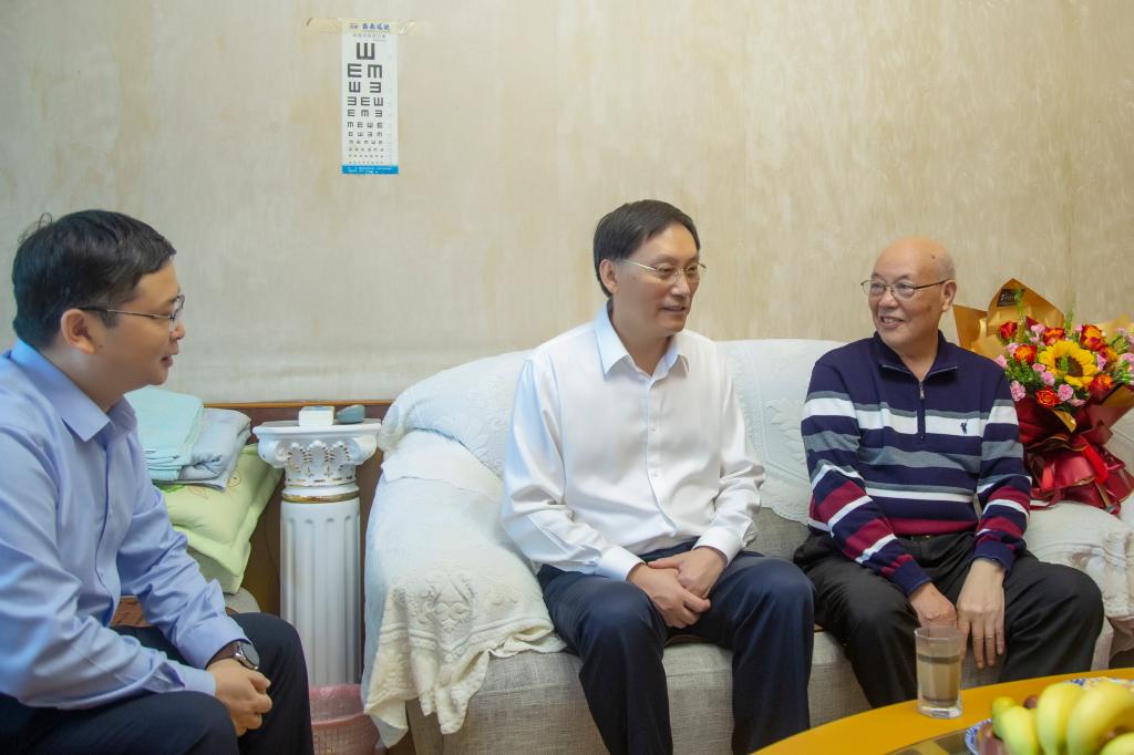 为大力弘扬尊老敬老爱老助老的社会风尚,10月4日,学校开展“喜迎二十大,欢庆重阳节”慰问活动。党委书记王成端率队走访慰问老领导、高龄、生病等离退休老同志。