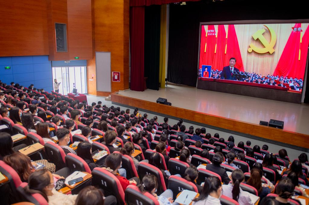 10月16日上午10时,中国共产党第二十次全国代表大会在人民大会堂隆重召开,习近平总书记代表十九届中央委员会作报告,大会的主题是:高举中国特色社会主义伟大旗帜,全面贯彻新时代中国特色社会主义思想,弘扬伟大建党精神,自信自强、守正创新,踔厉奋发、勇毅前行,为全面建设社会主义现代化国家、全面推进中华民族伟大复兴而团结奋斗。学校师生通过各种途径收听收看党的二十大开幕会盛况,纷纷围绕大会主题和报告畅谈心得体会。