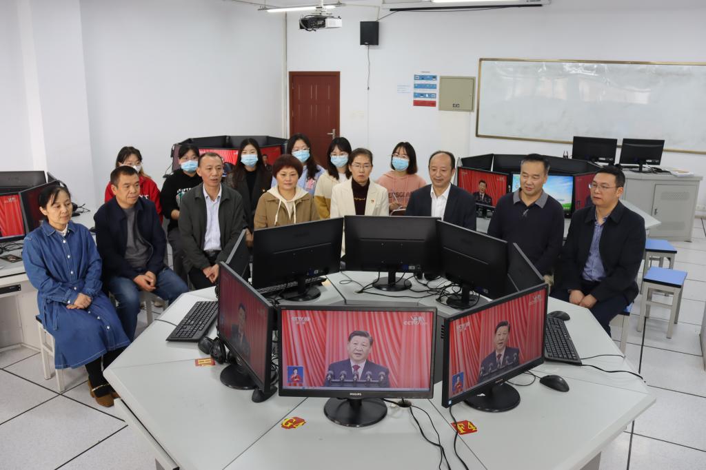 全校师生满怀期待,早早来到各个收看点。10时,大会正式开始,师生认真观看开幕会盛况。习总书记将近2个小时的报告,全面总结了过去五年来的工作和十年来的伟大变革,深刻阐述了新的历史条件下坚持和发展中国特色社会主义的一系列重大理论和实践问题,提出了一系列新思想、新观点和重大判断与重大举措,事关党和国家事业继往开来,中国特色社会主义前途命运,中华民族伟大复兴,对鼓舞和动员全党全国各族人民不忘初心,牢记使命,满怀信心全面建成社会主义现代化强国、实现第二个百年奋斗目标,以中国式现代化全面推进中华民族伟大复兴具有重大的现实意义和深远的历史意义,报告思想深刻,主题鲜明,内涵丰富,重点突出,新意突出、语言清新、视野宏大,令人振奋,催人奋进。
