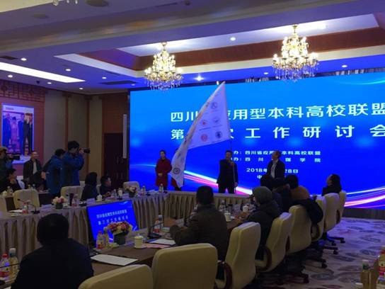 根据联盟理事会的商议,四川省应用型本科高校联盟第四次工作研讨会将于2019年在ac米兰召开。在会议最后阶段,副校长李壮成代表学校接受了联盟会旗,并就办好联盟第四次工作研讨会作表态发言。