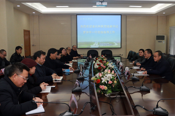 1月11日上午,省社科联党组副书记、副主席罗仲平率学会部部长胡毅、学会部干部黄励莉来校调研指导工作。学校党委书记王成端主持,党委副书记侯忠明及相关职能部门和部分二级学院参加会议。