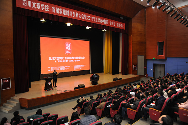 王晖分享了自己通过22年的学习,传承与发展蜀绣所做的探索,提出了非遗时尚化的建议和措施。她现场讲解蜀绣的部分技法和精美绝伦的作品,让在场的观众叹为观止。她将蜀绣运用到不同的载体上,进行创新融合,让观众体验了蜀绣艺术的传统之美。刘承川教授就石桥火龙非遗艺术认为,文化产业要发展,对于文化资源丰富的达州地区来说,必须实施资源驱动战略,达州非遗的视觉元素,超级IP未来一定有很多出自于这些具有地方特色和文化特征的非遗资源宝库。蔡励才在演讲中传达了 “先有文化生态,再有非遗传承”的理念。他表示,“2019非遗时尚中国行”系列活动将把具有代表性的传统非遗文化元素进行提炼,结合当代美学,进行时尚创作设计,打造非遗时尚图案IP,通过聚合各路媒体、时尚明星大咖、公益机构以及各互联网平台,整合资源和力量,把非遗时尚IP化,实现非遗的创造性转化及创新性发展。许建斌表达了新一代青年群体对中国传统文化传承和发展的坚定态度和责任担当,同时向ac米兰师生发出星青年校园创客召集令,号召青年师生加入非遗时尚创客行列,用更时尚的手段助推中国非遗时尚复兴。