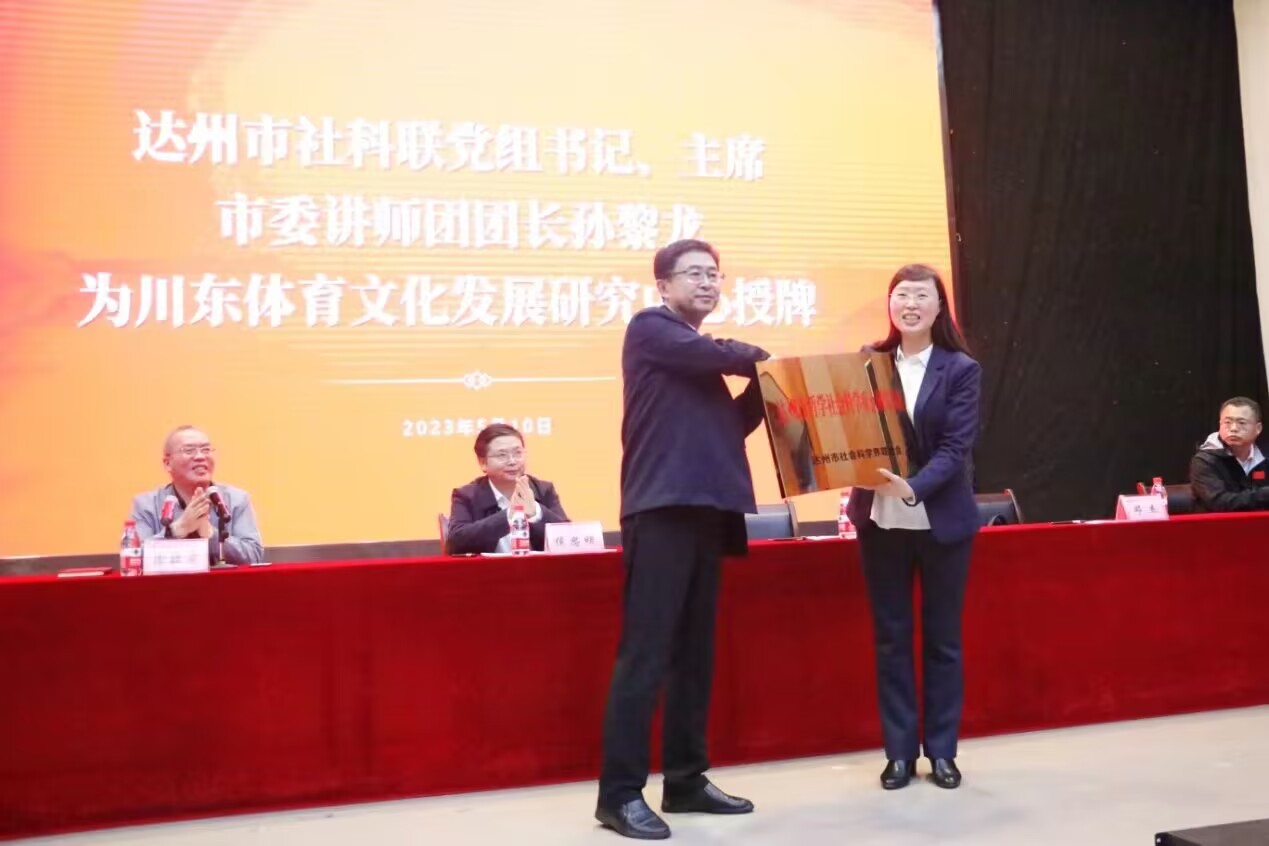 达州市社科联副主席罗波宣读了《达州市社科联关于认定川东体育文化发展研究中心为达州市哲学社会科学重点研究基地的通知》。经市社科联党组研究决定,认定川东体育文化发展研究中心为达州市哲学社会科学重点研究基地。