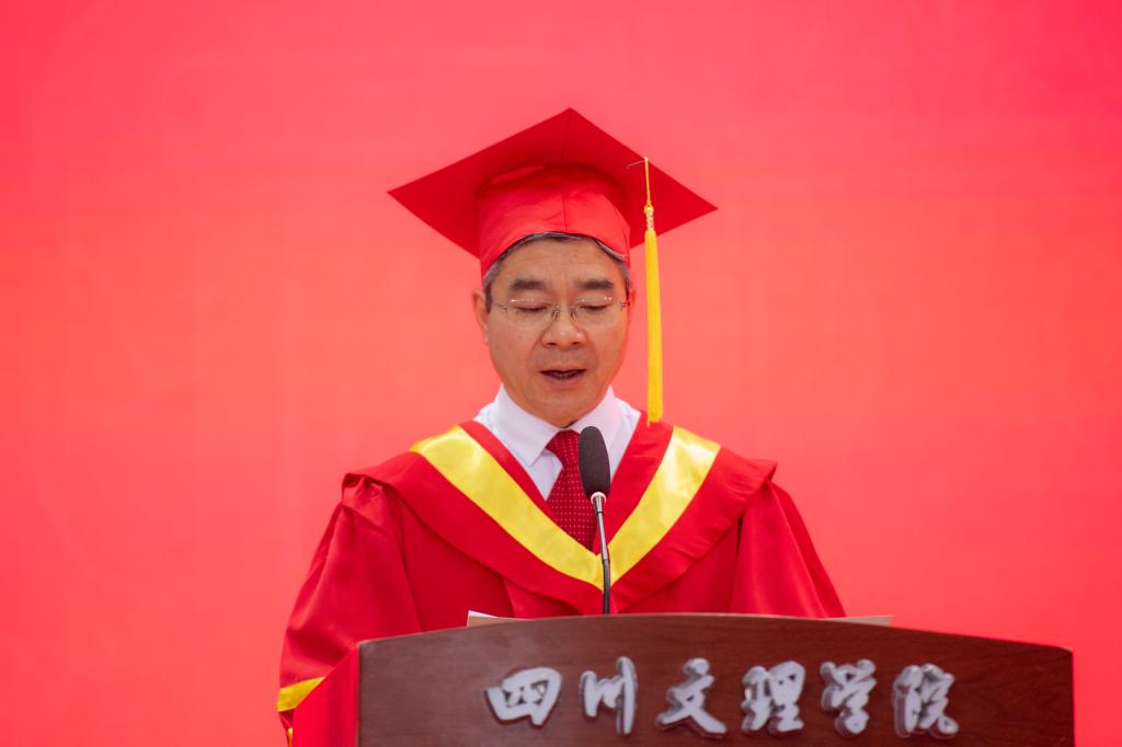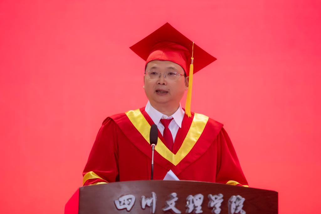 “你们通过不懈的努力,收获了知识、学习了本领、磨练了意志、结下了友谊。这些成绩,既是老师们辛勤培育的结果,更是你们不懈奋斗、努力拼搏的结果,我由衷地为你们感到自豪和骄傲!这样的你们太棒了!”侯忠明代表学校向圆满完成学业的全体毕业生致以最热烈的祝贺。他说,四年弹指一挥间,短暂而多彩,难忘又难分。同学们在校的四年何其幸运,见证了祖国的繁荣昌盛、新中国成立70周年、建党百年华诞的伟大时刻,感受到了党的二十大擘画的中国式现代化宏伟蓝图;何其特殊,新冠疫情肆虐全球,全校师生同舟共济,众志成城,坚持生命至上,科学防控,教学科研没有松劲;何其不易,学校处于转型发展、加速发展的最为关键时期,学校坚持问题导向,突围“四大瓶颈”,全力冲刺申硕工程,在达州市委市政府的大力支持下,莲湖东区即将建成投入使用,未来还将建设高新校区,形成“一校三区3万人”的办学格局。这些成绩和荣誉,困难和问题,我们都是经历者,更是创造者、奋斗者!