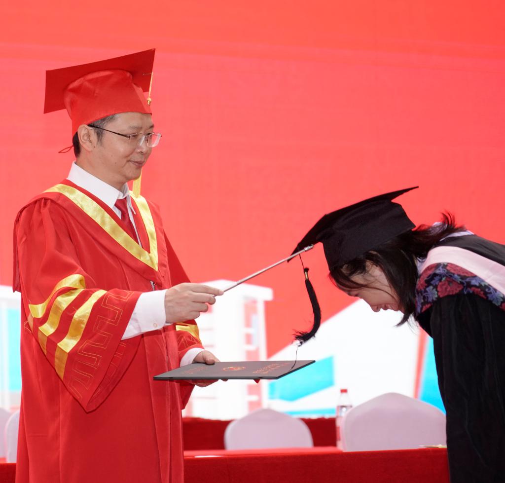 校领导为毕业学子拨穗正冠