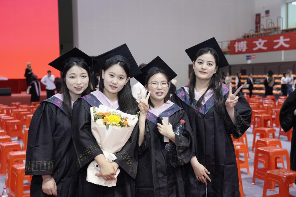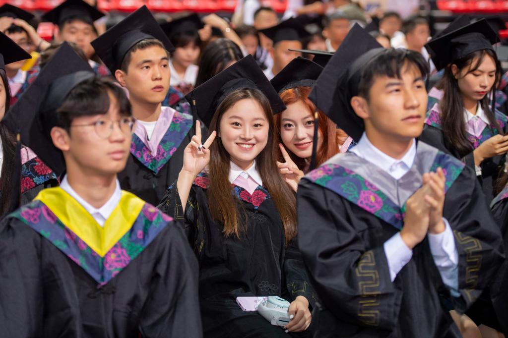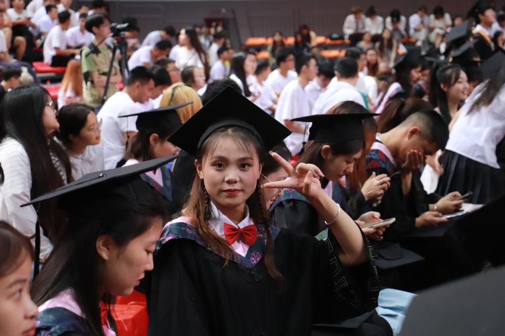 今年学校2023届共有4000余名本专科生顺利毕业。典礼开始前,主会场外毕业生们忆往事、畅未来,会场内《起风了》《再见》《海阔天空》等精彩暖场演出,“毕业快乐 共赴山海 放飞梦想”的欢呼声与热烈的掌声将现场气氛瞬间点燃。