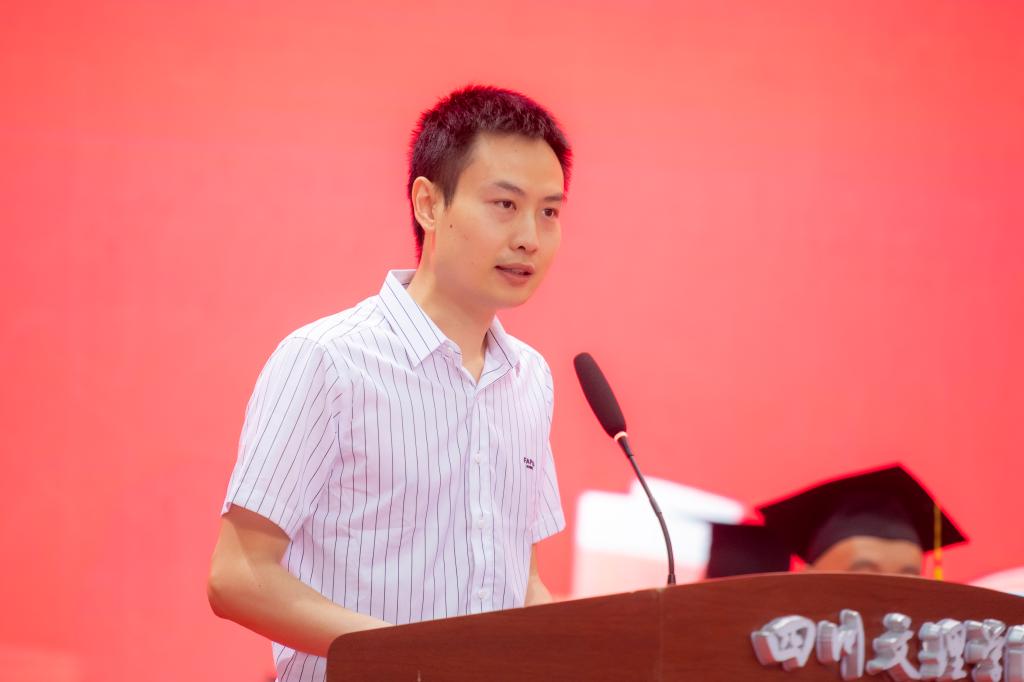 “明月不知君已去,夜深还照读书窗”。化学化工学院副院长周绿山博士说道:“从文理出发,再回到文理,这是我梦想的追求,也是成长的见证。今天,你们即将步入前程,追梦而去。愿你们做一个感恩、胸怀祖国的人,做一个乐观、热爱生活的人,做一个执着、追求理想的人。”