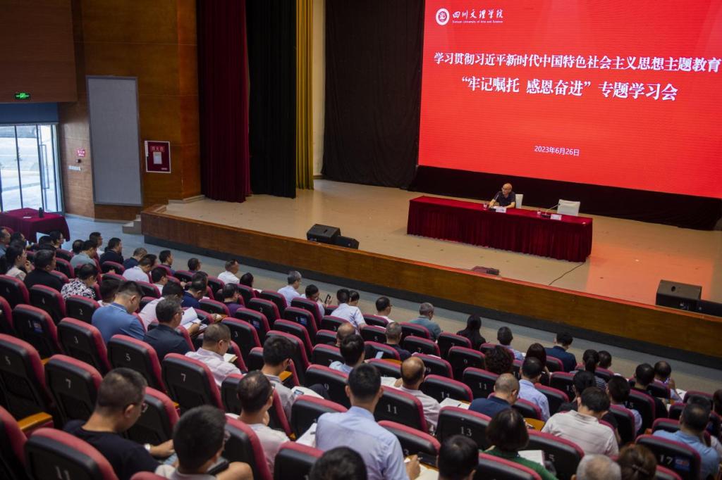 黄涛强调,全体党员干部要把“牢记嘱托、感恩奋进”学习研讨作为深化主题教育的重要抓手,深入贯彻落实党的二十大精神和习近平总书记对四川工作重要指示批示精神,学思用贯通、知信行统一,将主题教育焕发出来的学习工作热情,转化为攻坚克难、干事创业的强大动力,敢为善为,勇挑大梁,以更加奋发有为的精神状态推进各项工作,走稳走实学校内涵式高质量发展步伐。