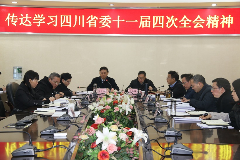 王成端介绍了12月10日在成都召开的省委十一届四次全会基本情况,传达省委十一届四次全会主要内容和会议精神。省委十一届四次全会主要任务是坚定以习近平新时代中国特色社会主义思想为指导,深入贯彻落实党的十九大精神和习近平总书记对四川工作系列重要指示精神,总结2018年工作,研究部署2019年工作,促进全省经济社会持续健康发展、推动治蜀兴川再上新台阶。