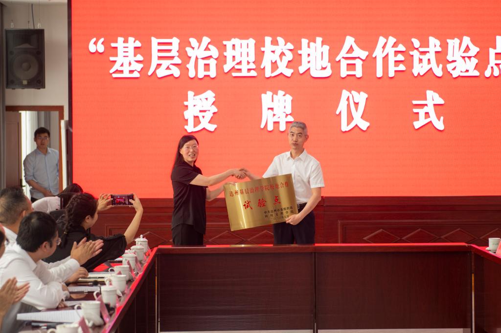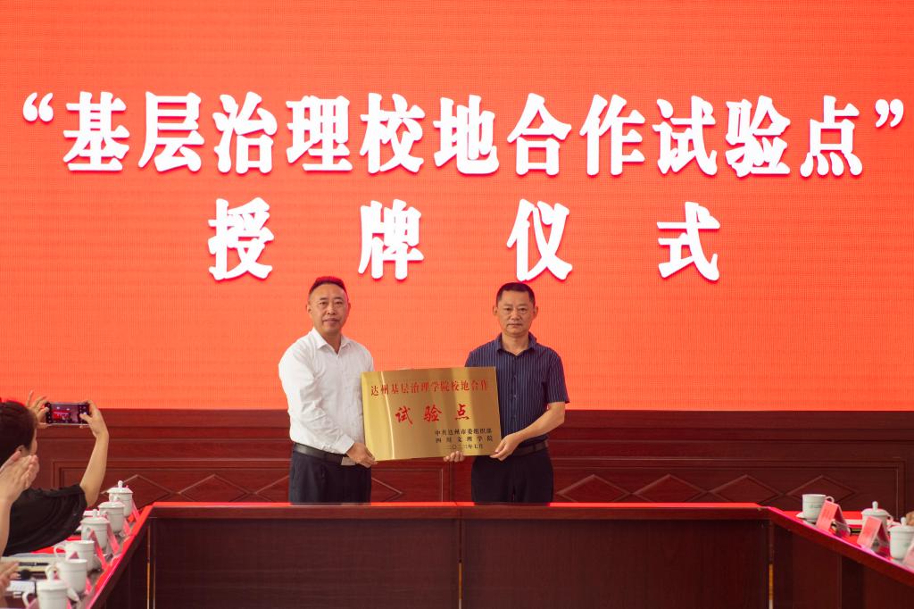 侯忠明代表学校向固军镇大桥村捐赠第二批价值21万元的路灯、凸光镜等设施设备,向万源市检察院颁授“ac米兰官网中文网站实践教育基地”牌匾;副校长邓杰向万源市检察院颁授“达州基层治理学院校地合作试验点”牌匾,党委组织部部长涂德祥向大桥村颁授“达州基层治理学院校地合作试验点”牌匾。