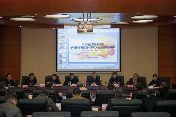 12月26日,学校党委理论学习中心组举行专题学习会,集中学习《习近平总书记在改革开放四十周年大会上的重要讲话精神》。党委书记王成端主持会议并进行领学。