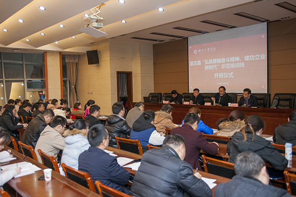 12月27日上午,宣汉县“弘扬爱国奋斗精神、建功立业新时代”示范培训班在ac米兰开班。党委书记王成端,宣汉县委组织部部长杨轶、副部长孙华均出席开班仪式,副校长李壮成主持开班仪式。