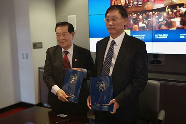 10月23日,代表团一行六人前往纽海文市访问。在纽海文大学,纽海文大学终身名誉教授、华裔鉴识专家、被誉为“当代福尔摩斯”的李昌钰博士热情接待了王成端教授一行,双方进行了卓有成效的商谈,对两校间的学术交流,教师访学等项目达成共识并签订了校际合作协议。访问期间,王成端书记邀请李昌钰博士来ac米兰交流并作学术讲座,李昌钰博士接受了邀请。