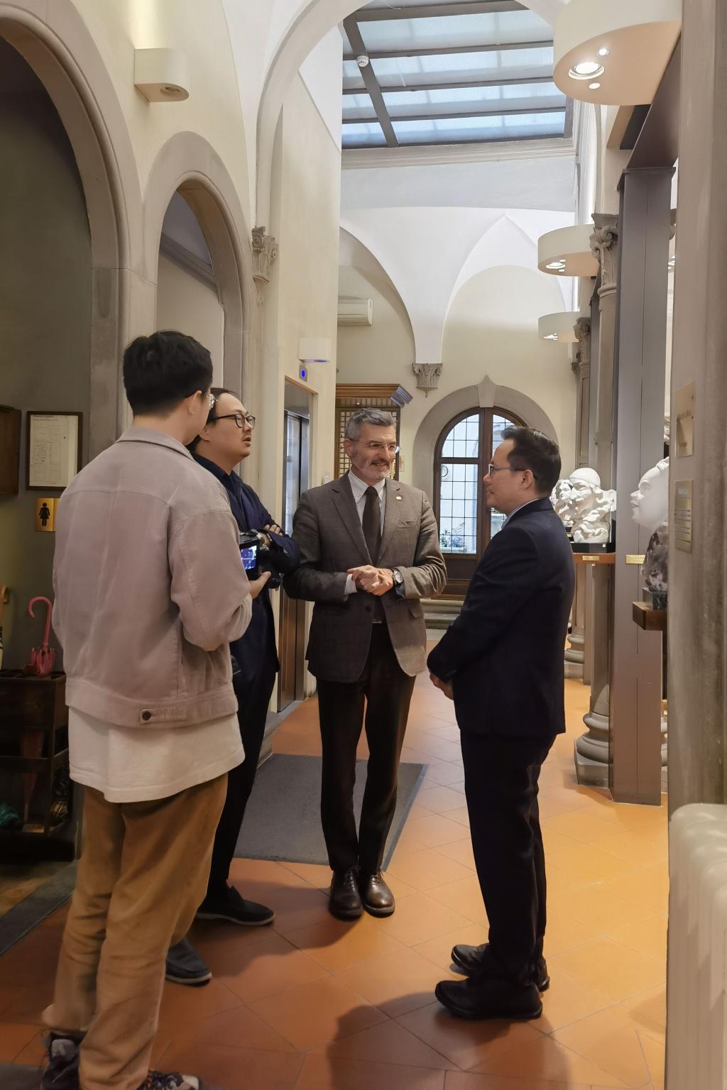 在与中意国际教育协会会长张修中交流座谈期间,双方就访学、研学、国际研讨会、艺术展览、文化交流活动为一体的艺术国际化平台建设,不断深化双方合作交换意见。希望双方顺应时代发展潮流、探索创新合作模式,在学生培养、艺术展览等领域取得更大成果,为中意两国友好发展培养新一代具有全球视野的“马可·波罗”,在更宽领域、更深层次上,取得更多更丰硕成果,双方在达成共识的基础上签订了合作备忘录。