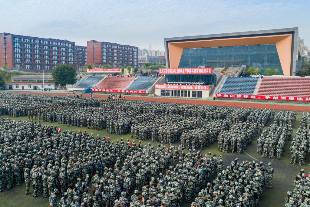 各职能部门负责人、各二级学院党政负责人、指导员、教官,以及来自全国25个省市区的6000多名2023级新生参加典礼。